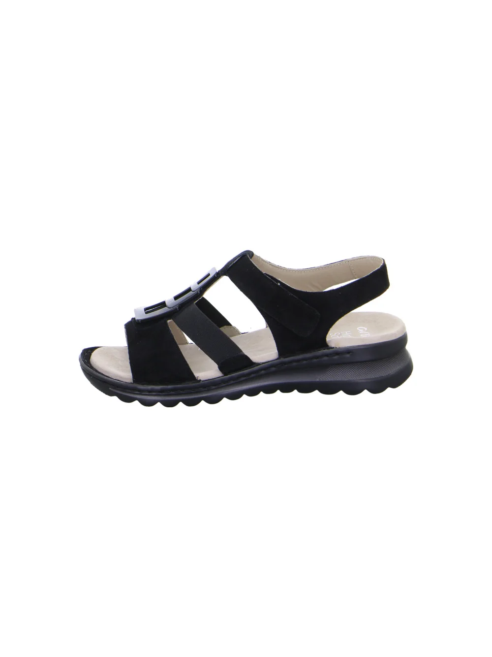 A puha bőrből készült pántok és a csinos díszítőelem igazán vonzza a tekintetet és jó tartást ad a szandálnak. A tépőzáras rögzítő megkönnyíti a fel- és levételt, míg az oldalán található két rugalmas gumiszalag gondoskodik a tökéletes illeszkedésről. A szilárdan beépített bőrborítású talpbetét különösen kényelmes és puhán párnázott. A cipő HighSoft technológiával rendelkezik, amely a puha felső anyagot kényelmes talpbetéttel kombinálja, így biztosítja a nyugodt járást. A pántok bőrrel vannak bélelve, így lágyan fekszenek a lábfejen, és nem okoznak nyomáspontokat. A profilozott talp nemcsak jó tapadást biztosít, hanem kifejezetten sportosnak és stílusosnak is tűnik. Ez a gyönyörű ara szandál tökéletes társ a forró napokon.