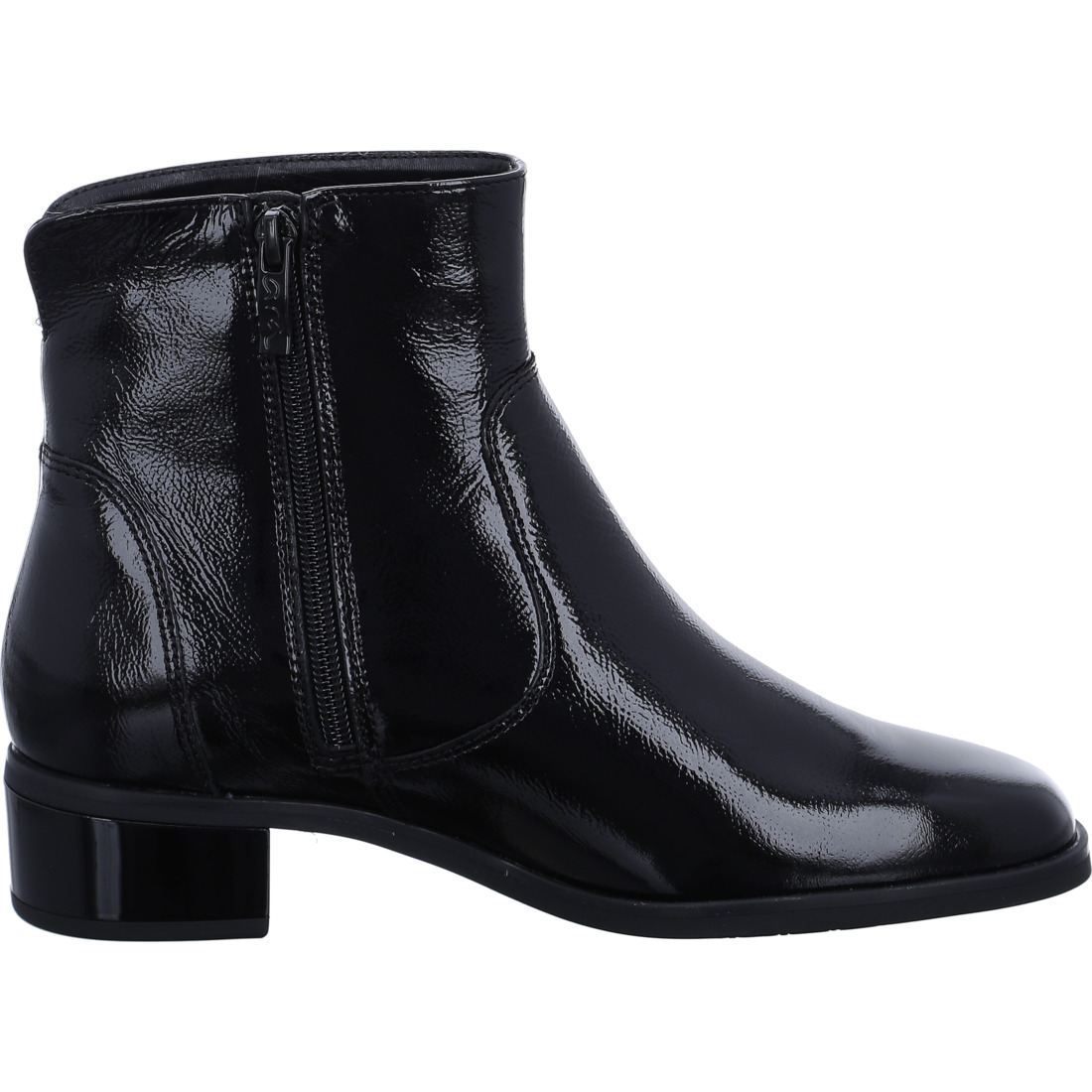 Ez az elegáns bokacsizma nem utolsósorban nagyszerű és időtálló kialakításával nyűgöz le. Felső anyagként kiváló minőségű, puha lakkbőrt használtak, mely gyengéden simogatja a lábat. A bokacsizma belseje puha textil bélést kapott, így a hideg láb többé nem jelent problémát. A puha felső anyagból készült kényelmes Highsoft funkciónak és a labdaterületen speciális habbetétes talpnak köszönhetően minden lépésnél biztosított a kellemes közérzet. Gyengéden támogatja a láb ívét és nagy rugalmasságot biztosít. Igazi plusz pont a laza talpbetét, amely szükség esetén néhány lépésben eltávolítható és visszahelyezhető. A belső cipzár rendkívül praktikus, és megkönnyíti a fel- és levételt is. A csúszásmentes talp biztosítja a biztonságos lépést. Az ara nőies bokacsizmája tökéletesen kombinálható elegáns üzleti ruhával, de jól mutat hétköznapi farmernadrággal és bőrdzsekivel is.